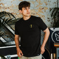 This tee features puff print, which gives it a raised texture. To take care of your tee, please wash cold, and do not tumble dry or iron directly on the print.